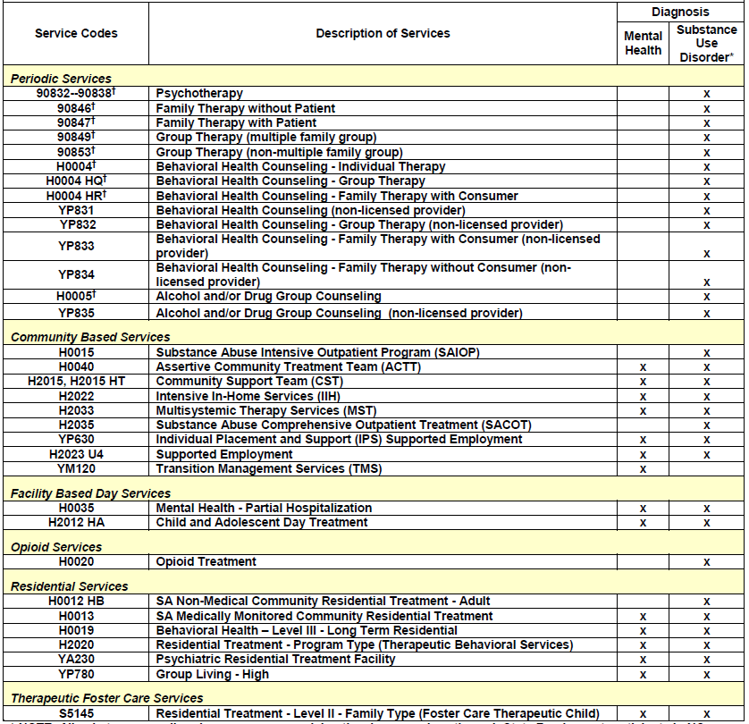Qualifying Services for Consumers Receiving Mental Health and Substance Use Disorder Services For Which NC-TOPPS is Required